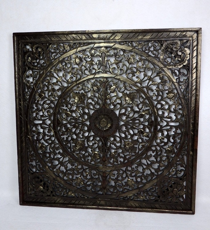 Krásná, jemná jako krajka, taková je tato zlatá mandala s bílým podkladem, což zvýrazňuje její strukturu. Ať už máte domov v moderním stylu nebo naturálním, vždy si někde najde své místo k obdivu. Vyrobena v Indonésii, ruční práce, dřevořezba.Rozměr 100x100 cm, šířka 3 cm, Materiál: dřevěná deska - lisované dřevo Suar (Samanea Samman)